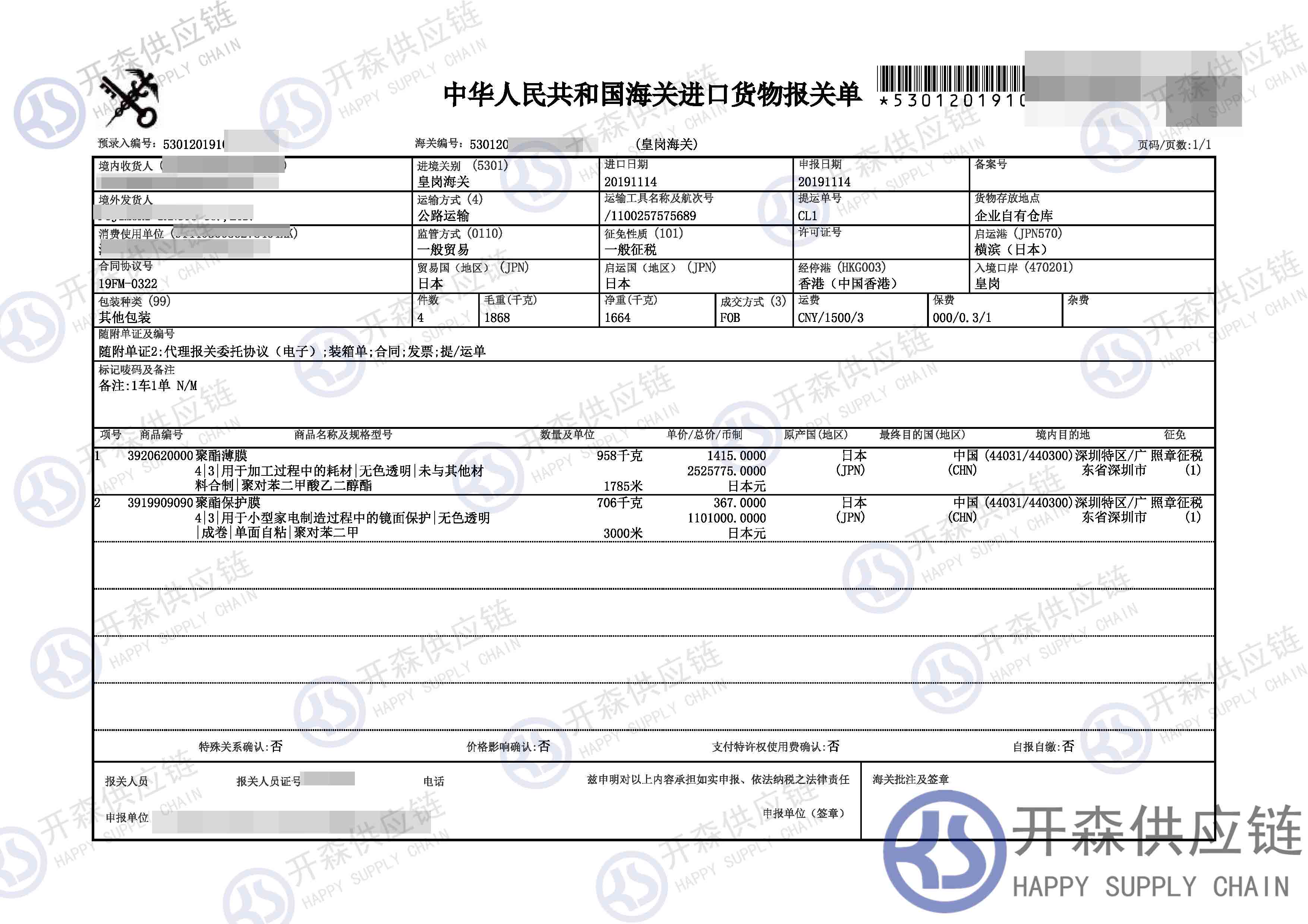 【進(jìn)口案例】聚酯薄膜進(jìn)口報關(guān)代理服務(wù)