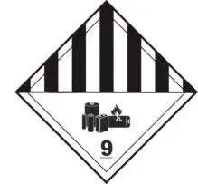 對(duì)瓦特小時(shí)的額定值不超過(guò)100Wh的移動(dòng)電源(鋰離子電池組),如符合聯(lián)合國(guó)《關(guān)于危險(xiǎn)貨物運(yùn)輸?shù)慕ㄗh書 規(guī)章范本》(第20修訂版)第3.3章188特殊條款等相關(guān)規(guī)定可免除標(biāo)簽的要求。對(duì)瓦特小時(shí)的額定值大于100Wh的移動(dòng)電源(鋰離子電池組),其運(yùn)輸包裝上應(yīng)加貼下圖中9A號(hào)危險(xiǎn)性運(yùn)輸警示標(biāo)簽。