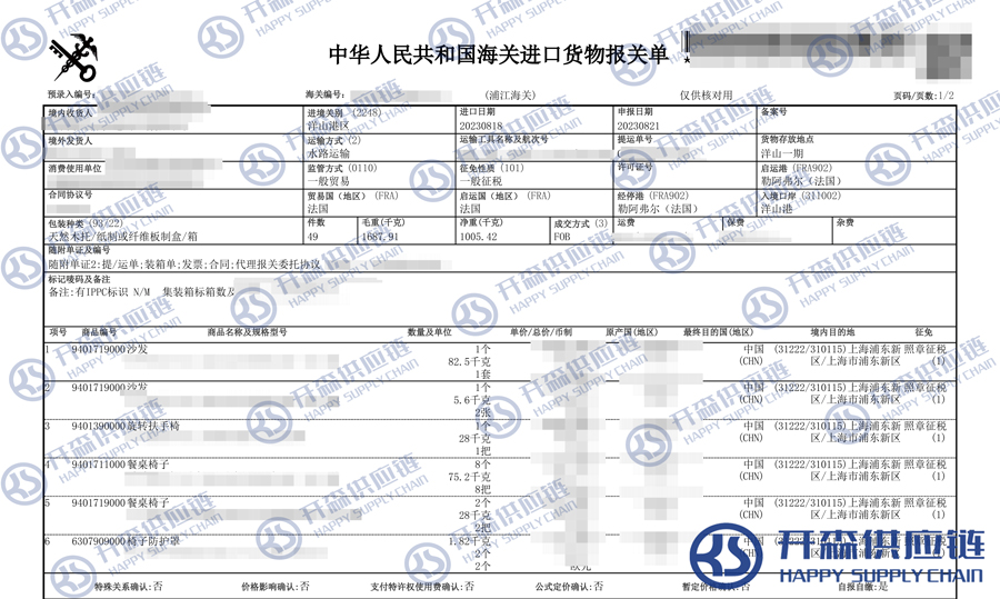 一、法國(guó)家具沙發(fā)進(jìn)口報(bào)關(guān)代理案例詳情