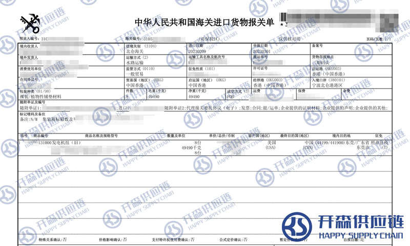 一、舊發(fā)電機(jī)組進(jìn)口報(bào)關(guān)代理案例詳情