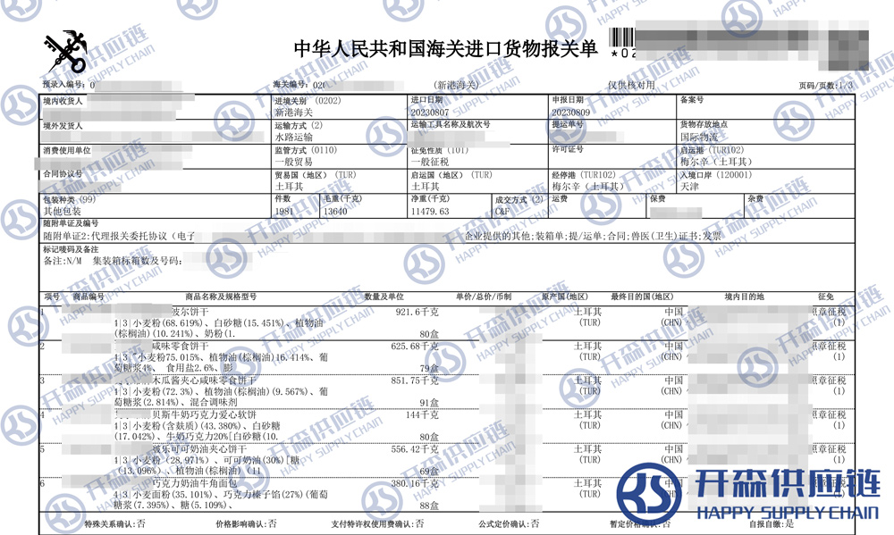 一、土耳其餅干進(jìn)口報關(guān)代理案例詳情