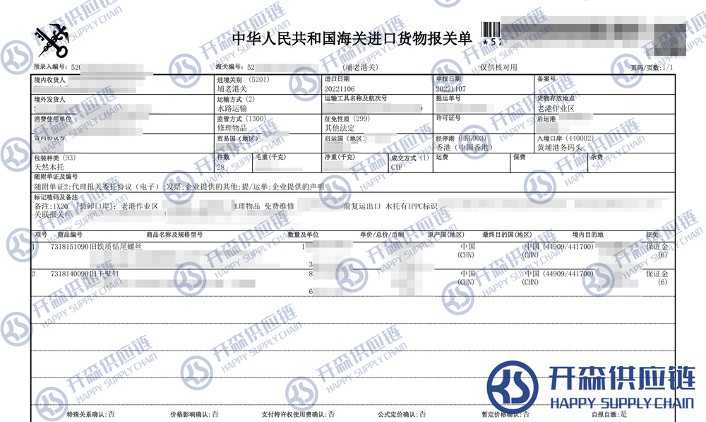 原文標題:舊干壁釘退運(返修)進口報關清關代理服務【經典案例】