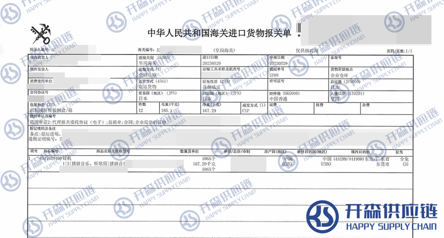 一、日本藍(lán)牙耳機(jī)退運(yùn)返修報(bào)關(guān)代理案例詳情